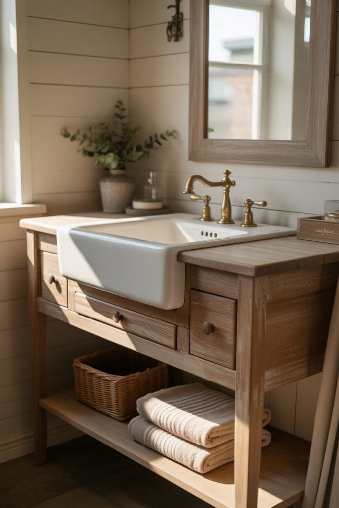 Budget angle: You can source reclaimed wood vanities or DIY a base using salvaged furniture, which keeps costs down while adding authentic character. Many homeowners paint old dressers and cut out the top to accommodate a sink—a creative, cheap alternative to buying new. Just make sure to seal the wood properly to handle moisture, especially around the sink area.