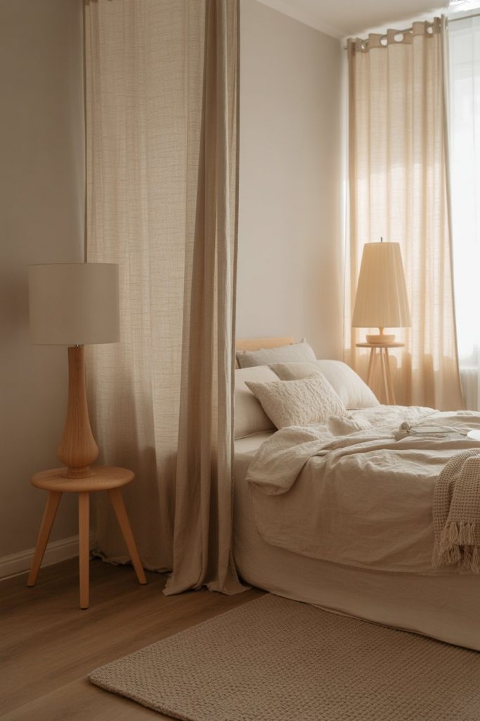 A Scandinavian bedroom thrives on simplicity, and layering neutral curtains in varying weights is the perfect way to add depth without clutter. Think a linen outer layer in oatmeal paired with a lighter cotton sheer in off-white. The effect is subtle but impactful, and it gives you flexibility to adjust light levels throughout the day. This approach is all about quiet aesthetic choices that prioritize comfort and function.