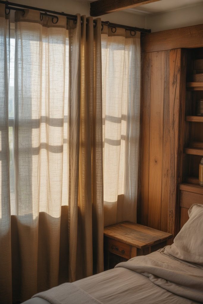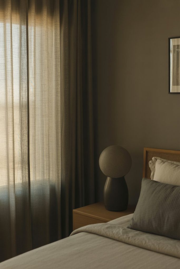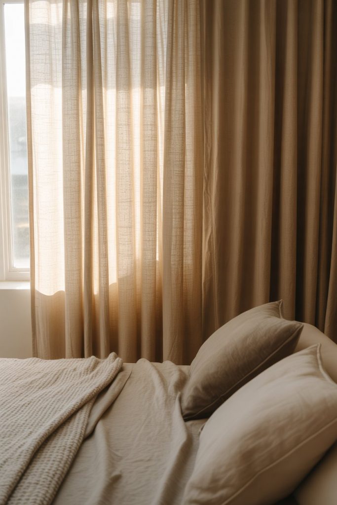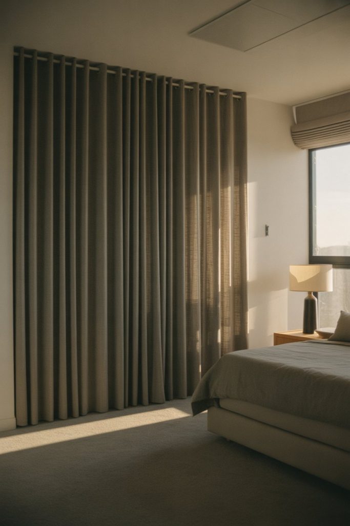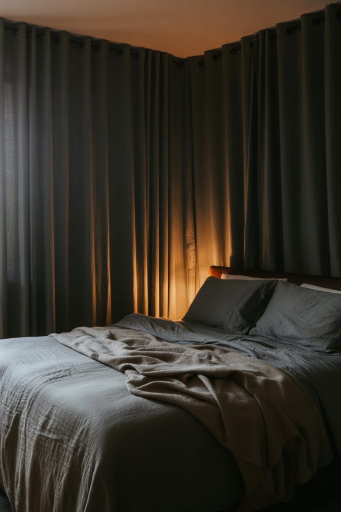 A practical insight here: linen curtains in darker tones are excellent at hiding stains and wear, which makes them ideal for bedrooms that double as home offices or workout spaces. They also block more light than you’d expect, especially if you choose a tightly woven fabric. If full blackout is a priority, consider adding a separate liner rather than opting for a coated blackout linen, which can lose some of that natural drape and texture.