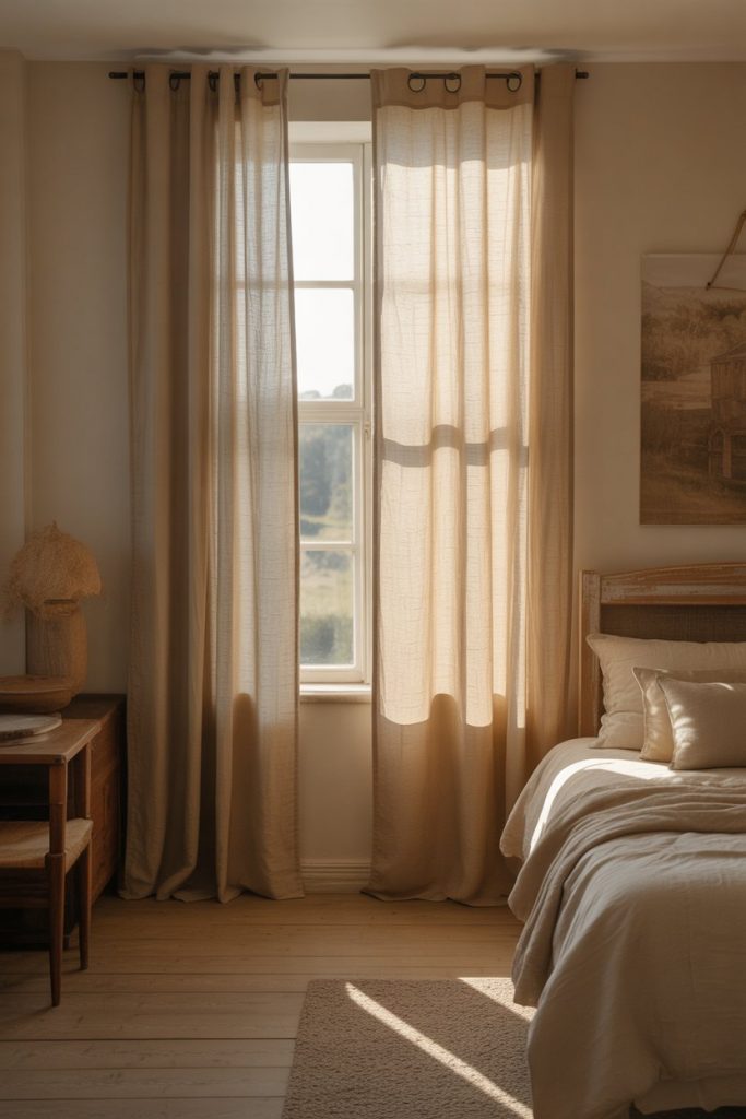 19. Washed Linen in Warm Beige for a Farmhouse Bedroom