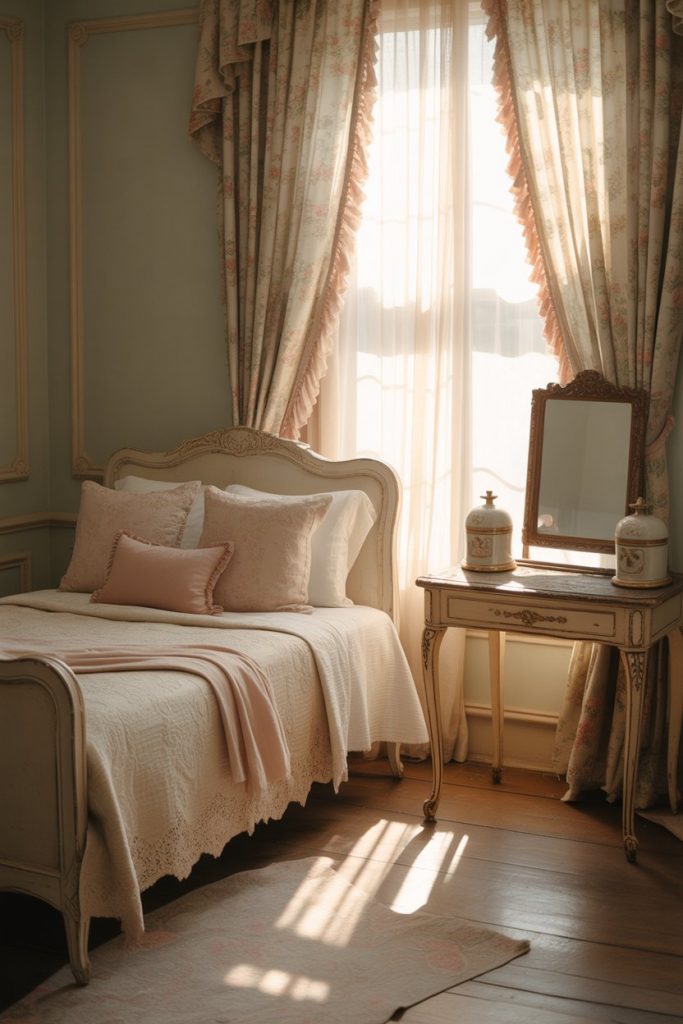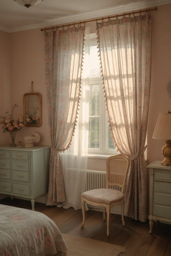 For a truly vintage bedroom, you can’t beat floral curtains with a ruffled hem—think cottage-core meets Grandma’s guest room, but in the best way. These work beautifully in spaces with antique furniture, quilts, and plenty of mismatched charm. The key is choosing a pattern that feels authentic, not reproduced, so look for muted colors and hand-blocked prints if you can find them.