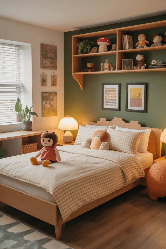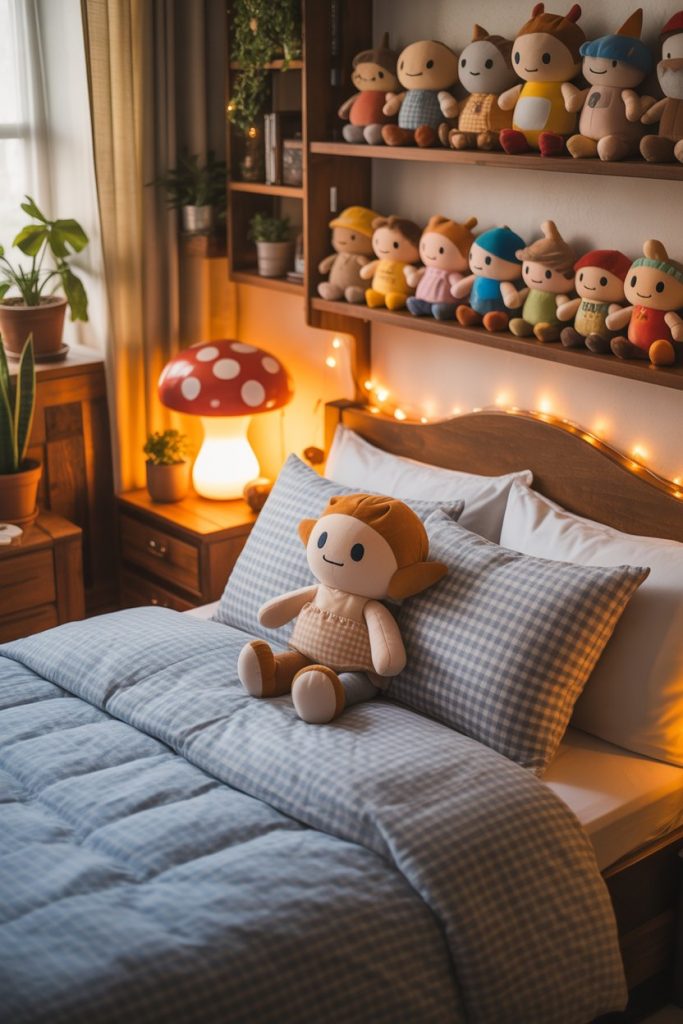 Fans of ACNH and Stardew Valley bring pixel coziness into real bedrooms using gingham duvets, mushroom lamps, and handmade plush displays. A unique and simple trend fueled by nostalgia, especially for millennials turning first homes into playful comfort zones.