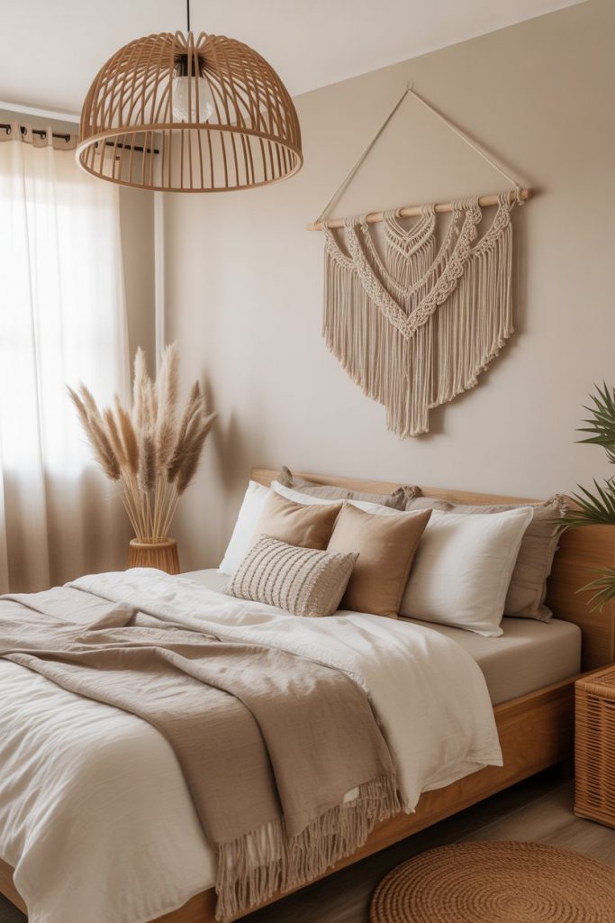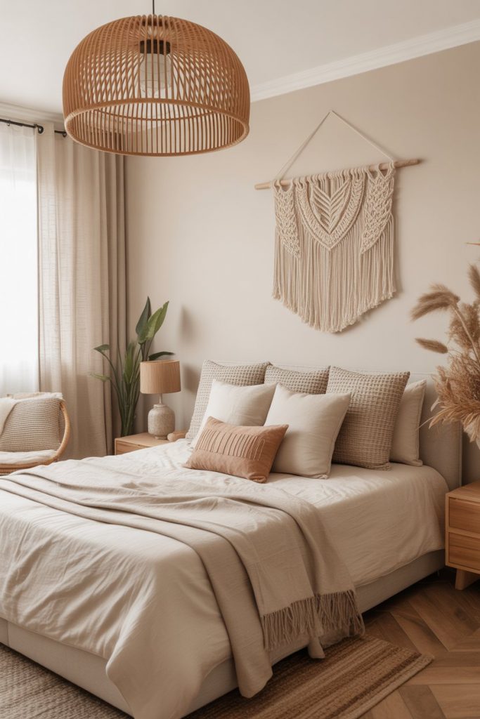 Modern boho design in 2026 thrives on layered textures, neutral palettes, and organic patterns. Think rattan pendant lights, handmade macrame, and linen bedding in earthy tones. This look captures the relaxed charm of bohemian style while feeling more intentional and curated than past versions. Perfect for those who want a carefree yet grounded aesthetic that feels timeless and personal.