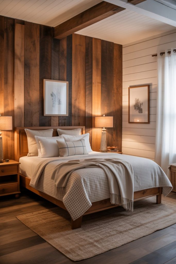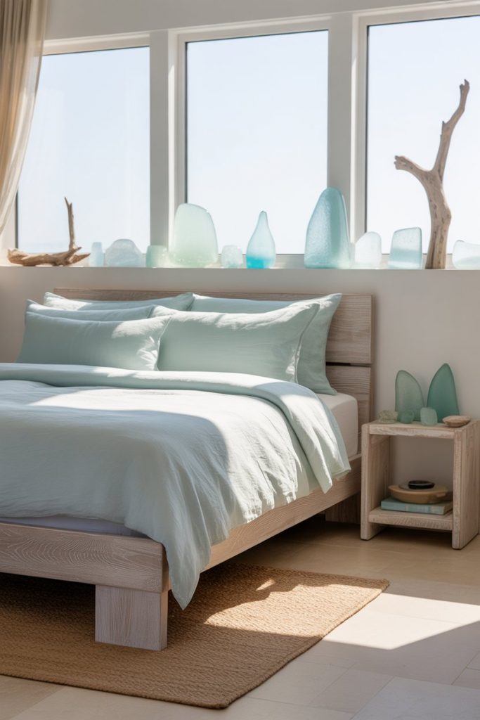 A minimal coastal bedroom brings the freshness of the ocean without clichés. Whitewashed oak, light blue linen, and sea-inspired ceramics create a peaceful setting. This simple and airy design suits both small urban apartments and large beach houses. It’s a favorite among designers like Shea McGee for its ability to make every morning feel like vacation.