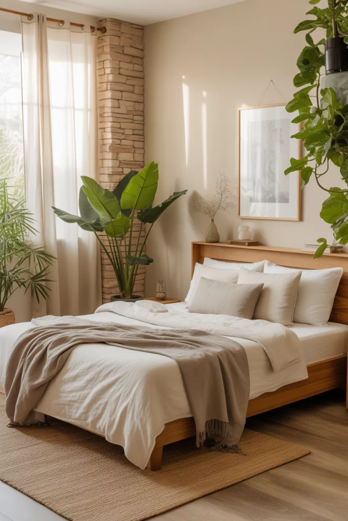 This design reconnects people with the outdoors by using plants, organic textures, and stone surfaces. Bedrooms become indoor sanctuaries that breathe freshness. Large windows, natural fabrics, and botanical art dominate the 2026 ideas of eco-conscious living.