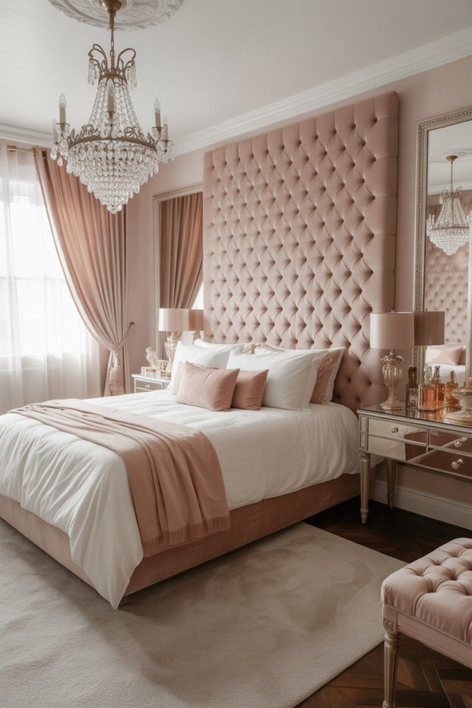 Classic glam returns with a 2026 twist—mirror accents, crystal lamps, and tufted headboards meet modern layouts. It’s about celebrating nostalgia without overdoing it. Designers use vintage chandeliers or mirrored vanities to bring sparkle to otherwise understated rooms.