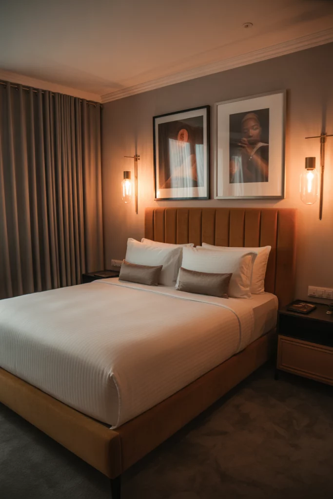 Inspired by five-star interiors, luxury hotel bedrooms now mix indulgence and function. Velvet upholstery, moody lighting, and art photography elevate the space. Great for those who want each night to feel like a mini getaway while keeping an uncluttered modern layout.