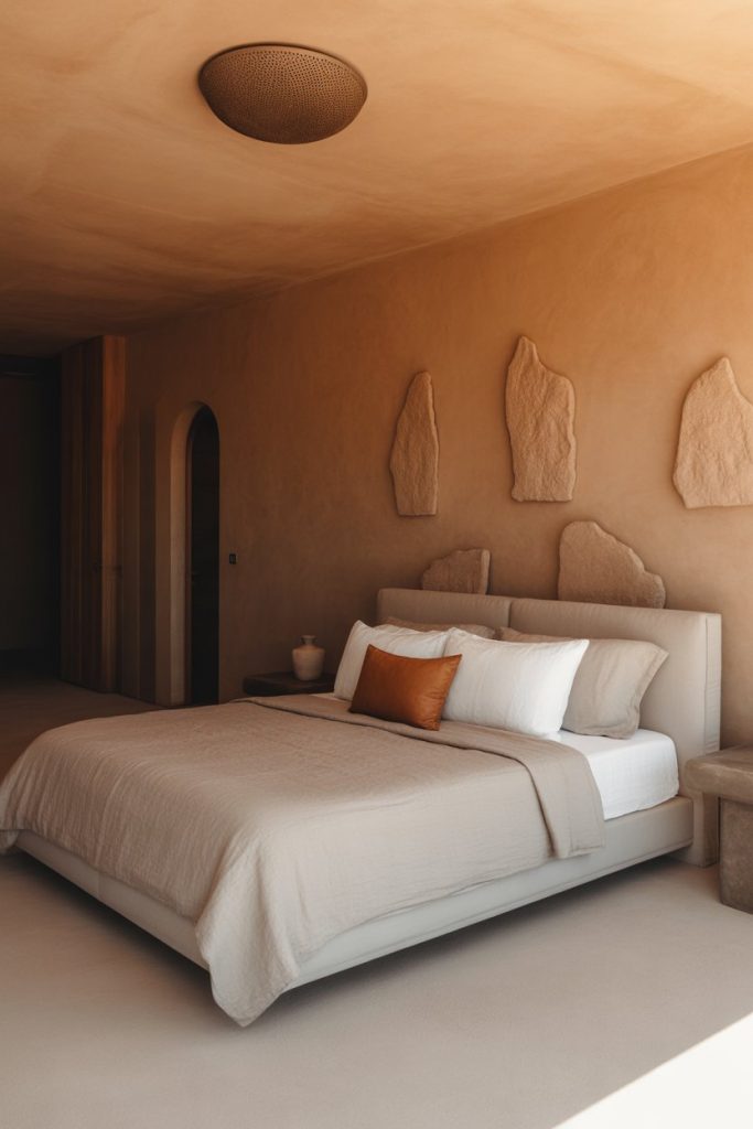 The modern desert style thrives on sandy hues, clay textures, and raw materials like linen and stone. It’s minimalist yet soulful, creating warmth through restraint. Perfect for open-plan homes or anyone who wants to feel nature’s quiet energy inside their retreat.