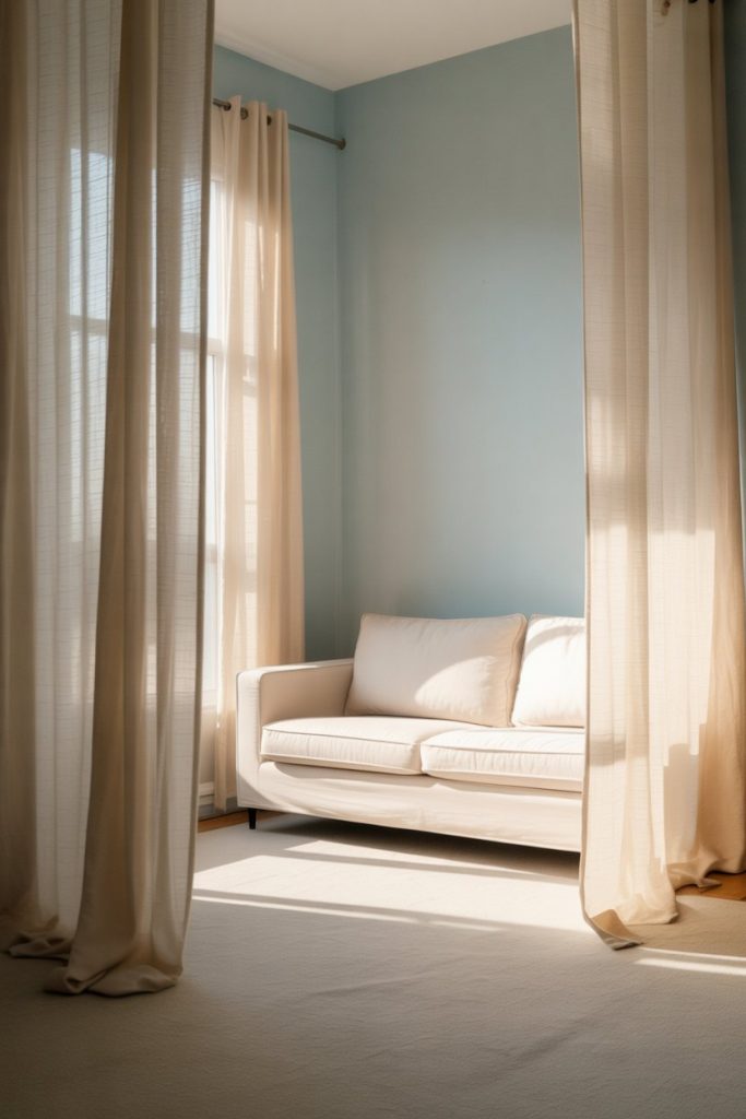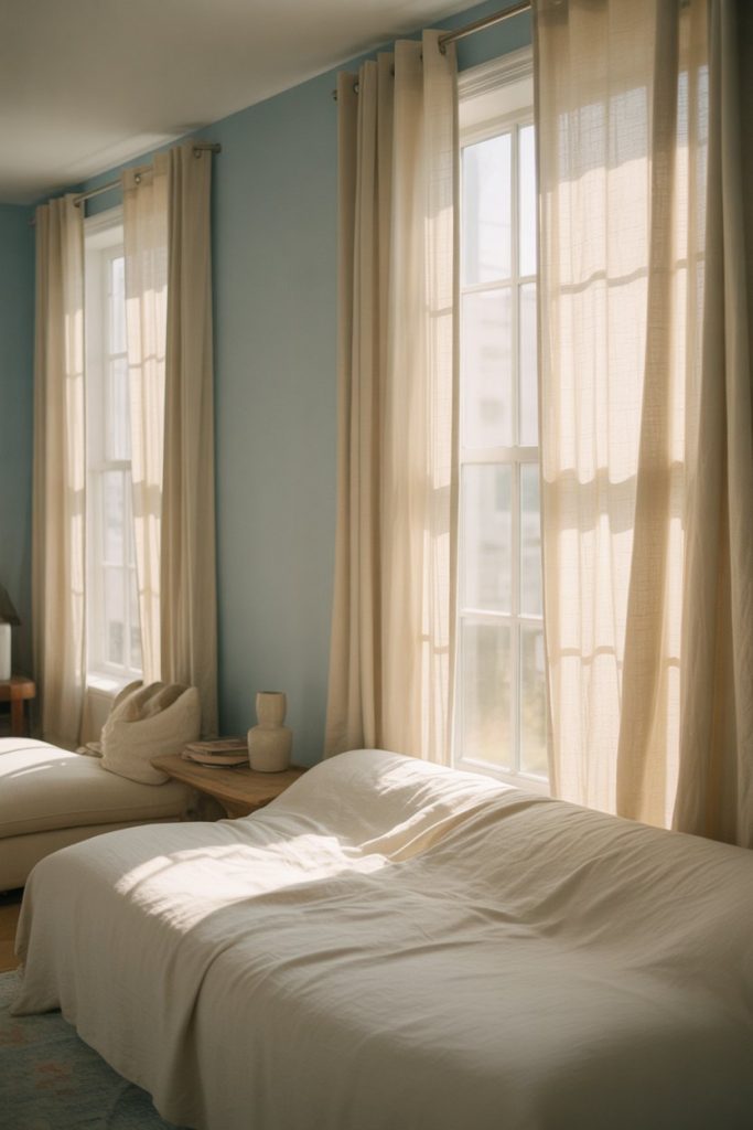 Where it works best: homes with large windows or sliding glass doors, particularly in climates with strong sun where light control matters. In the Southwest and Southern California, layered window treatments help manage heat gain while maintaining views. The investment can be significant—custom drapes often run $200-$500 per window—but the impact on your room’s comfort and appearance is immediate. For a budget-friendly version, try store-bought sheers with DIY-hemmed linen drapes, using decorative rings and a simple rod for easy installation.