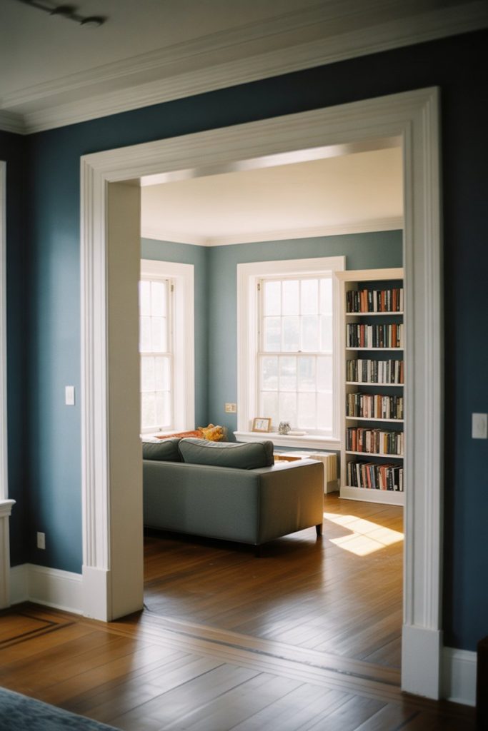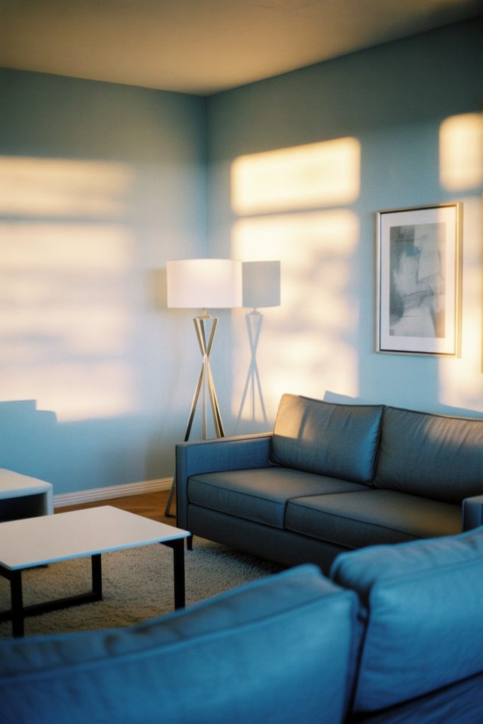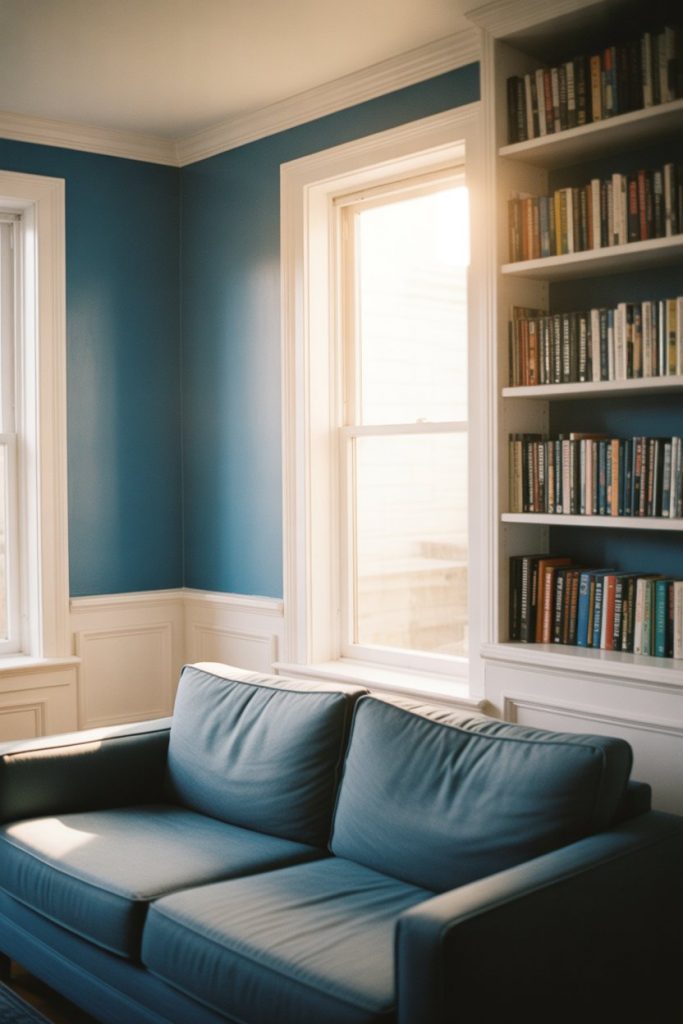Budget angle: paint is one of the most affordable ways to dramatically change a room, with quality interior paint costing $30-$60 per gallon. Most living rooms can be transformed with two gallons of blue and one gallon of white trim paint. If you’re hesitant, test samples on multiple walls and observe them in different lighting throughout the day. Morning light reveals cooler tones, while afternoon sun brings out warmer undertones. Many homeowners find that painting the trim first and the walls second leads to cleaner lines and a more professional finish.