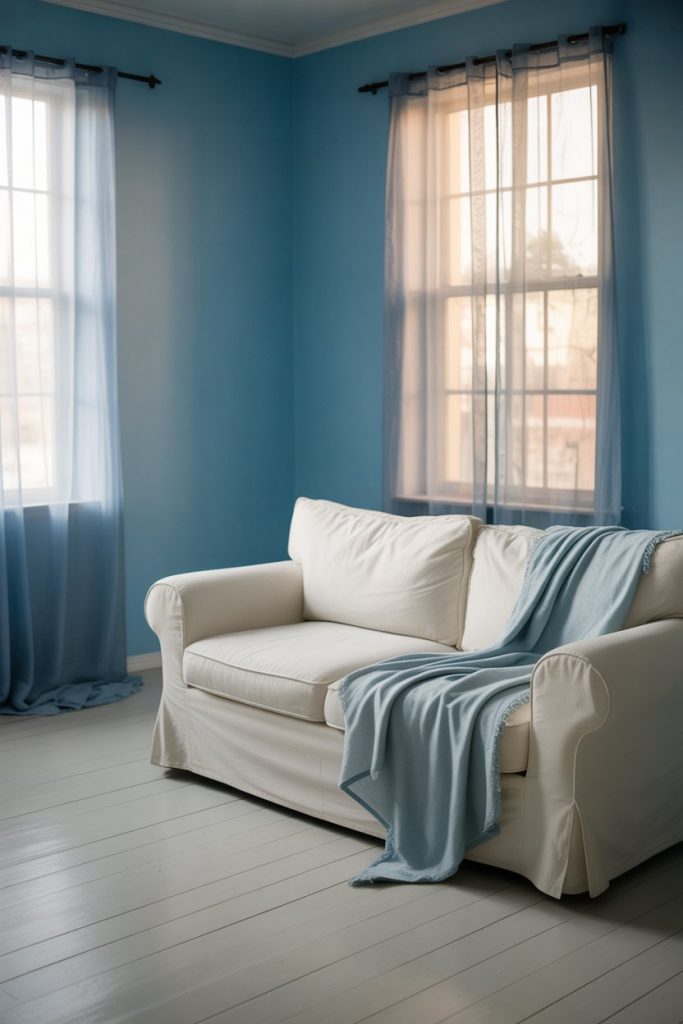 A common mistake is thinking sky blue will look washed out, but when paired with crisp white trim and adequate natural light, it’s actually remarkably refreshing. This shade works beautifully in cottage-style homes, beach houses, and any space where you want to feel transported to a calmer mental state. Americans living in high-stress urban environments often choose this palette for its psychological benefits—studies suggest light blue walls can lower blood pressure and reduce anxiety. Add texture through white linen, cotton, and soft wool to prevent the space from feeling flat or one-dimensional.
