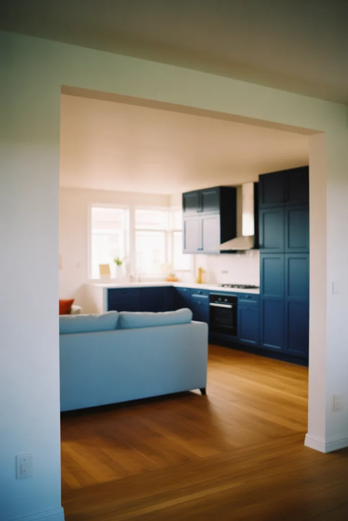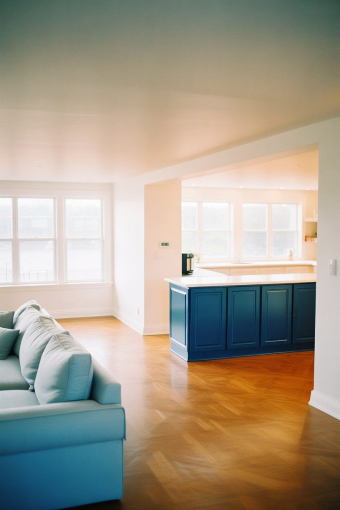Practical insight: open layouts require careful color planning since everything is visible at once. Many designers recommend choosing three shades of blue—light, medium, and dark—and distributing them strategically across the open space. This prevents monotony while maintaining cohesion. Americans with newer construction homes (built after 2000) are most likely to have open-concept layouts, and this design challenge is particularly relevant in suburban developments where open living is the norm. Use area rugs and furniture arrangements to create intimate conversation areas within the larger space.