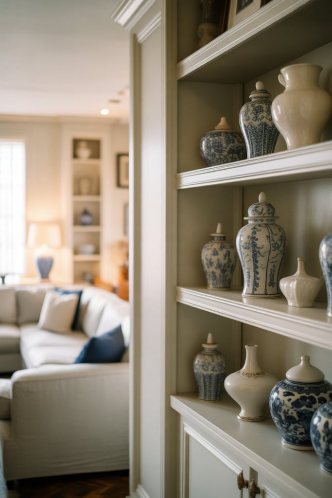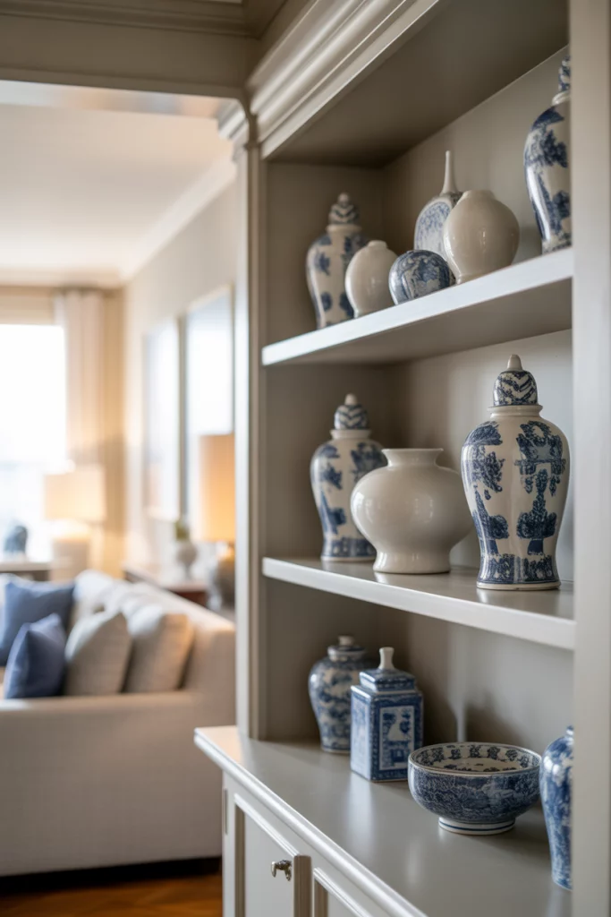 A micro anecdote: a collector in Connecticut started with one blue and white vase from a yard sale and now has over fifty pieces displayed throughout her living room. What began as a casual interest became a defining design element that gives her home incredible personality. Collections work best when grouped together rather than scattered, creating impact through repetition. They also offer an affordable way to add color and character—vintage blue and white pottery can often be found for under $20 per piece at thrift stores and estate sales, making this an accessible design strategy for budget-conscious decorators.