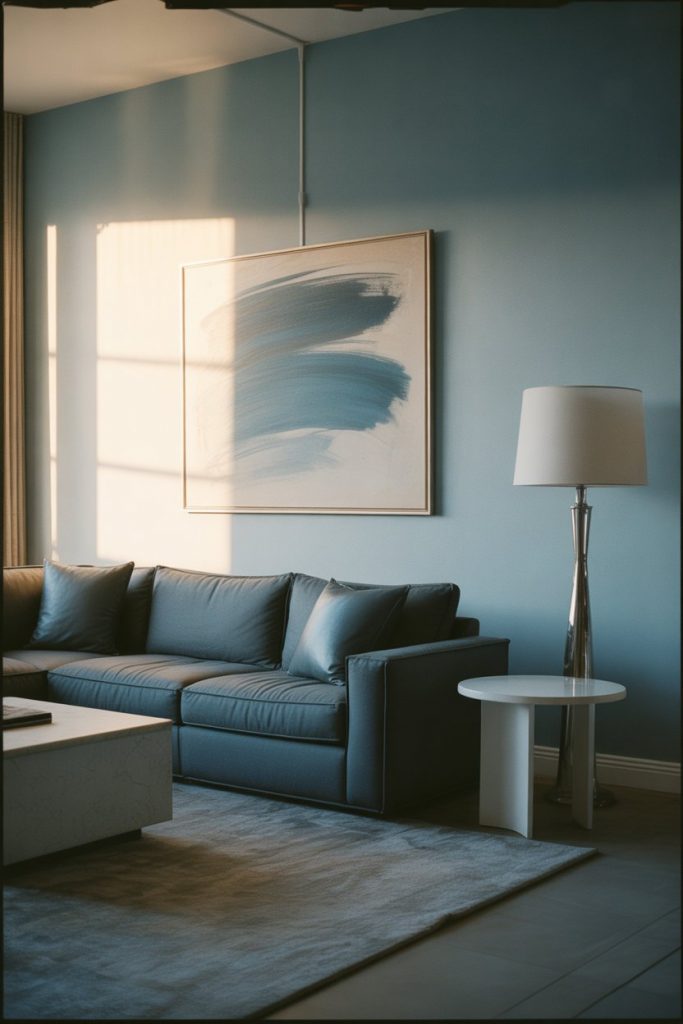 Expert-style commentary: designers often recommend this palette for clients who want something contemporary but not stark. The grey softens the crispness of blue and white, making the space feel more lived-in and approachable. It’s particularly popular in the Pacific Northwest and mid-Atlantic states, where natural light tends to be softer and cooler. To avoid a cold feel, incorporate warm wood tones in your coffee table or shelving, and layer in cozy textiles like wool throws and linen pillows.