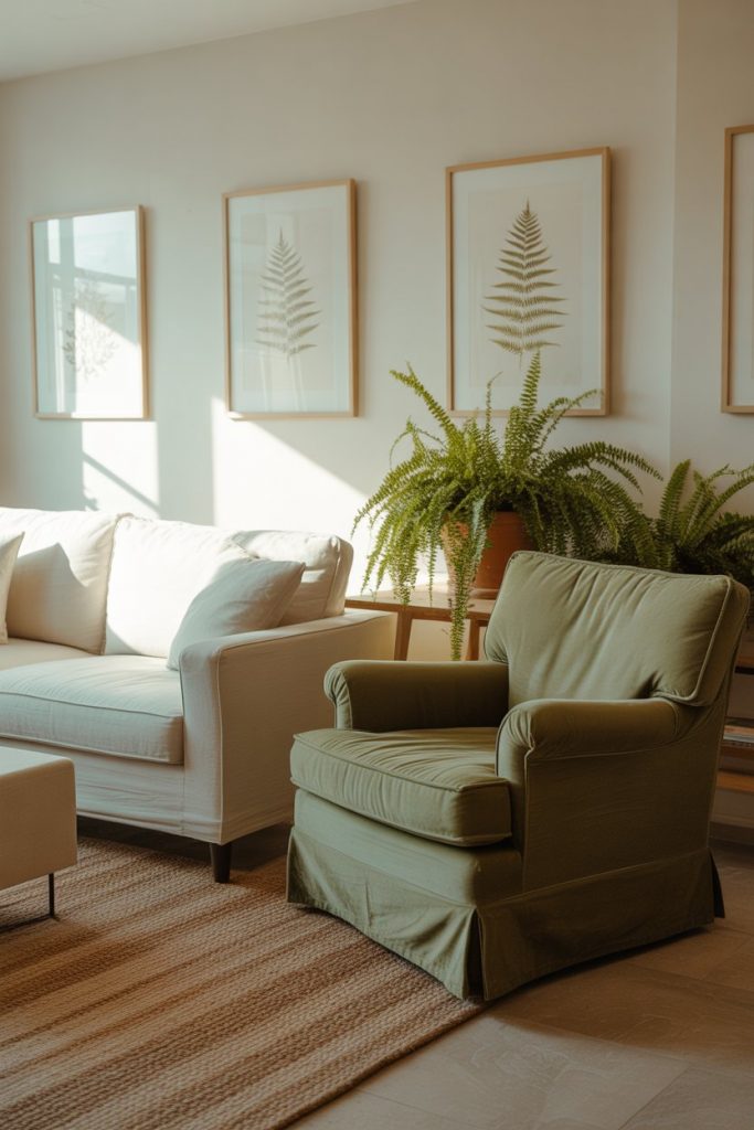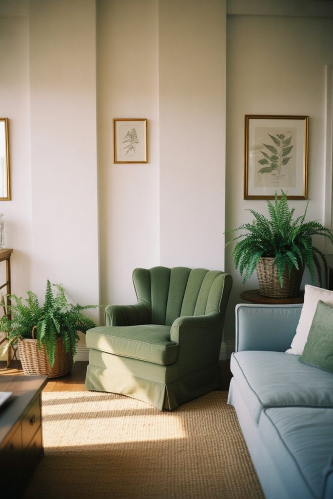 Introducing touches of green into a blue and white living room brings an organic, garden-inspired vibe that feels fresh and unexpected. Think botanical prints, potted plants, or even a sage green accent chair that complements your coastal blues. This combination mirrors nature—the sky, the sea, and the earth—creating a space that feels grounded and alive. It’s a subtle way to add warmth and depth without straying from the cool-toned palette.