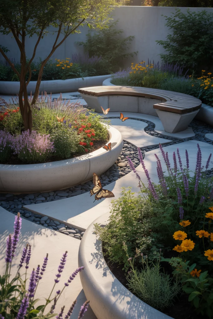 An herb zone designed with plants, landscaping ideas, DIY, aesthetics, and design layout adds function to beauty. I’ve noticed more homeowners blending edible gardens with pollinator beds because herbs like dill, fennel, and lavender attract butterflies while remaining practical ingredients for cooking. It’s a wonderful choice for balconies or kitchen-adjacent patios. The mix of scent, color, and light wing movement creates a lively environment that cooks and gardeners appreciate. Even beginners find this approach easy to maintain.