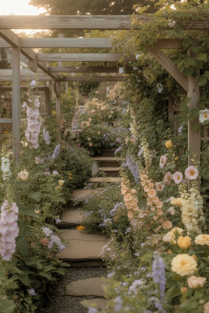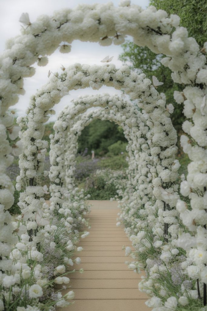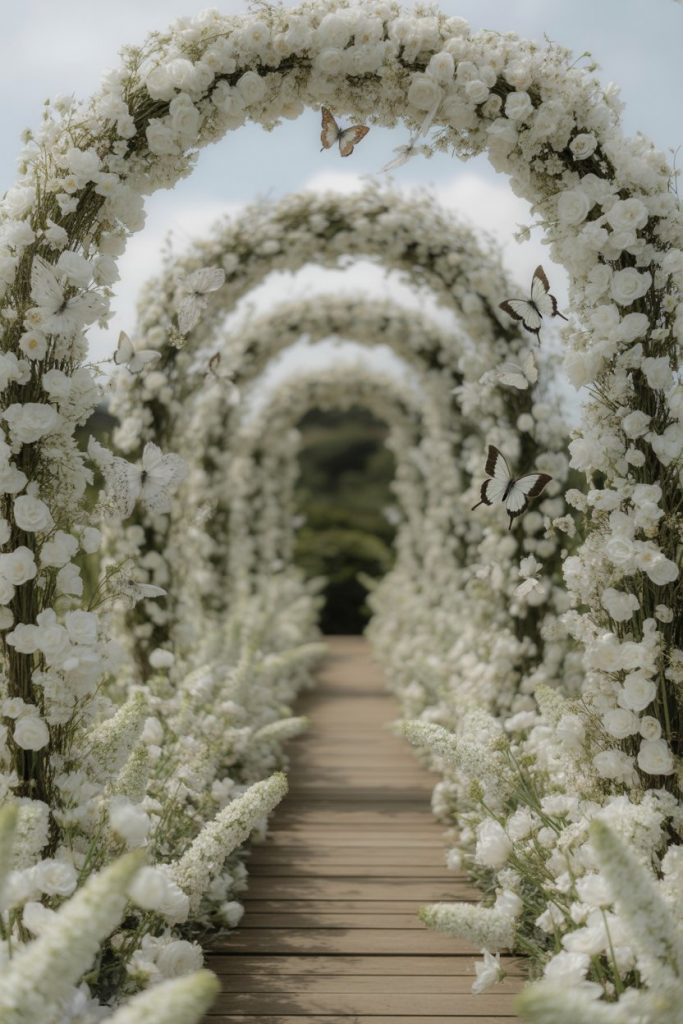 A romantic garden walkway shaped by wedding ideas, landscaping, theme, design layout, and plants creates a serene escape reminiscent of outdoor ceremonies. Friends who’ve recently married outdoors often say they wanted to “keep a piece of the wedding vibe” at home, and this idea delivers exactly that. Soft white flowers, arching stems, and fluttering butterflies lend an elegant but grounded feel. It’s a lovely choice for homeowners seeking a timeless and emotionally meaningful garden moment.
