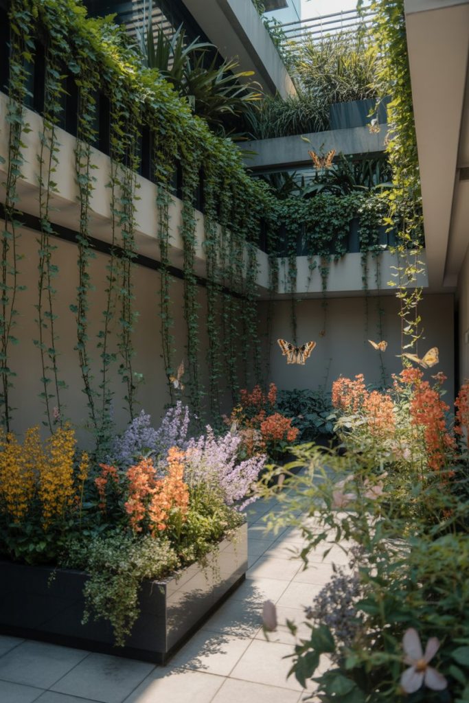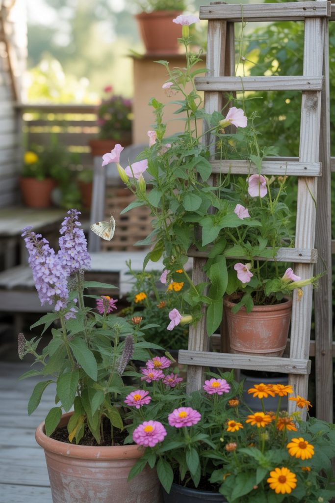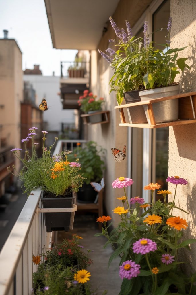 A balcony adaptation using apartments, DIY, plants, ideas, and aesthetics makes butterfly gardening possible even without a yard. I’ve seen so many renters transform tiny balconies with railing planters, vertical shelves, and lightweight pots filled with nectar-rich species. Butterflies are surprisingly adaptable and will visit elevated spaces if plants are consistent and aromatic. This idea works beautifully for city dwellers who want nature without leaving home.