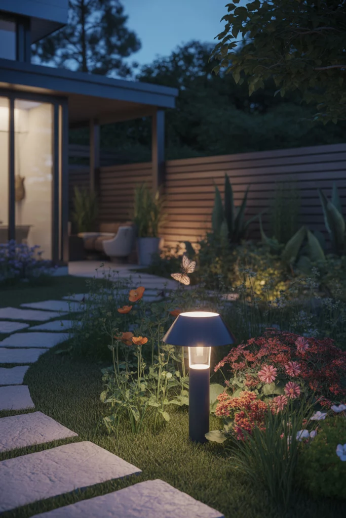 A night garden built around aesthetics, design layout, ideas, plants, and design ideas provides an enchanting evening atmosphere. With subtle lighting—solar lanterns, pathway glows—and night-scented blooms, an outdoor space becomes magical after sunset. While butterflies rest at night, moths and other pollinators still visit, adding movement and mystery. This idea fits patios, entryways, and backyard seating areas beautifully.