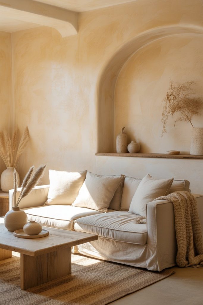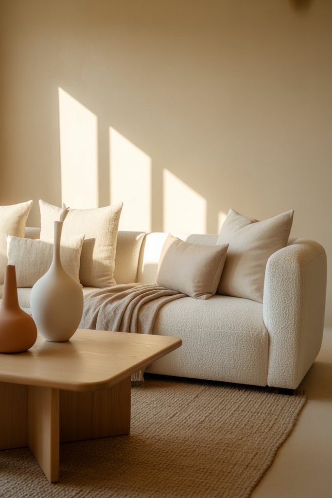 This approach transforms a neutral palette from flat to dynamic by layering materials like linen, bouclé, and wool. A modern minimalist foundation—think white walls and light oak furniture—becomes deeply inviting when you add a chunky knit throw, a jute rug, and matte ceramic vases. The key is mixing tones: cream, taupe, warm gray, and soft beige all work together to create depth without visual clutter.