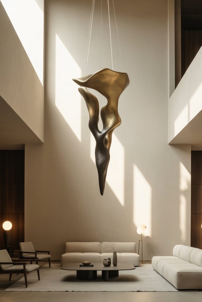 A bold pendant or chandelier doubles as functional art, especially in rooms with high ceilings. Whether it’s a brass orb, a woven rattan fixture, or a geometric metal design, the right light fixture transforms a contemporary living room 2026 from ordinary to extraordinary. Hang it low over a coffee table or seating area for maximum impact.