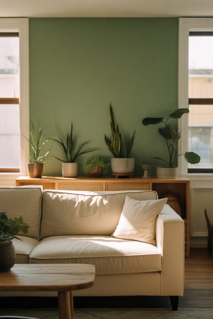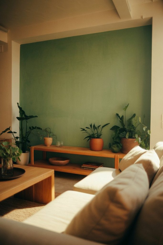 Sage, olive, and moss green are replacing the cooler grays of the past decade, bringing a cozy, organic vibe to contemporary living room 2026 spaces. Pair these hues with natural wood furniture and live plants—fiddle leaf figs, snake plants, or potted ferns—to reinforce the connection to nature. Even a single green accent wall can shift the entire mood.