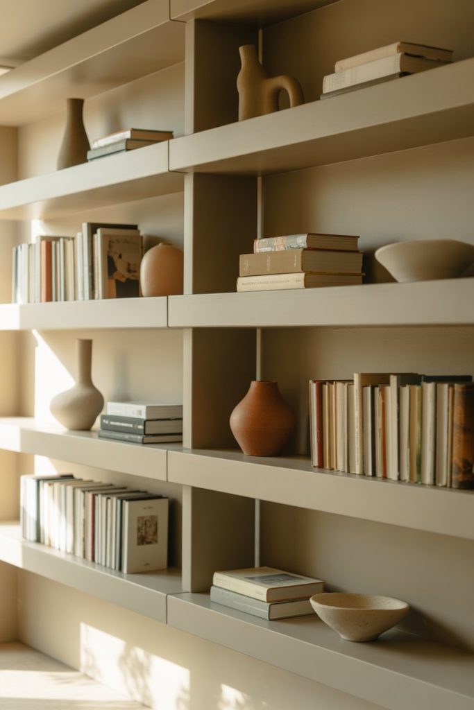 Built-in shelving, especially when painted in a contrasting dark tone, adds architectural interest and functional storage. These recessed niches are perfect for displaying books, ceramics, or small plants, turning everyday objects into curated decor ideas. Flanking a fireplace or framing a TV unit, they create symmetry and balance.