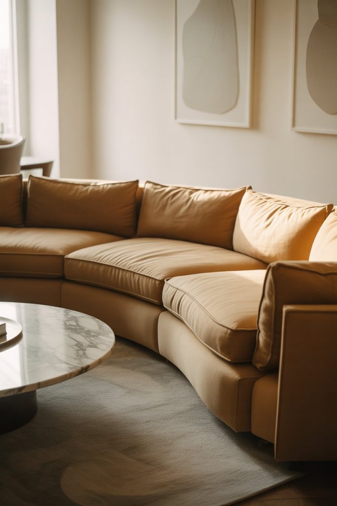 Common mistake: Pairing a curved sofa with too many other rounded elements. Balance the softness with angular accents—a rectangular media console, square artwork, or linear shelving—to avoid a space that feels too whimsical or ungrounded.