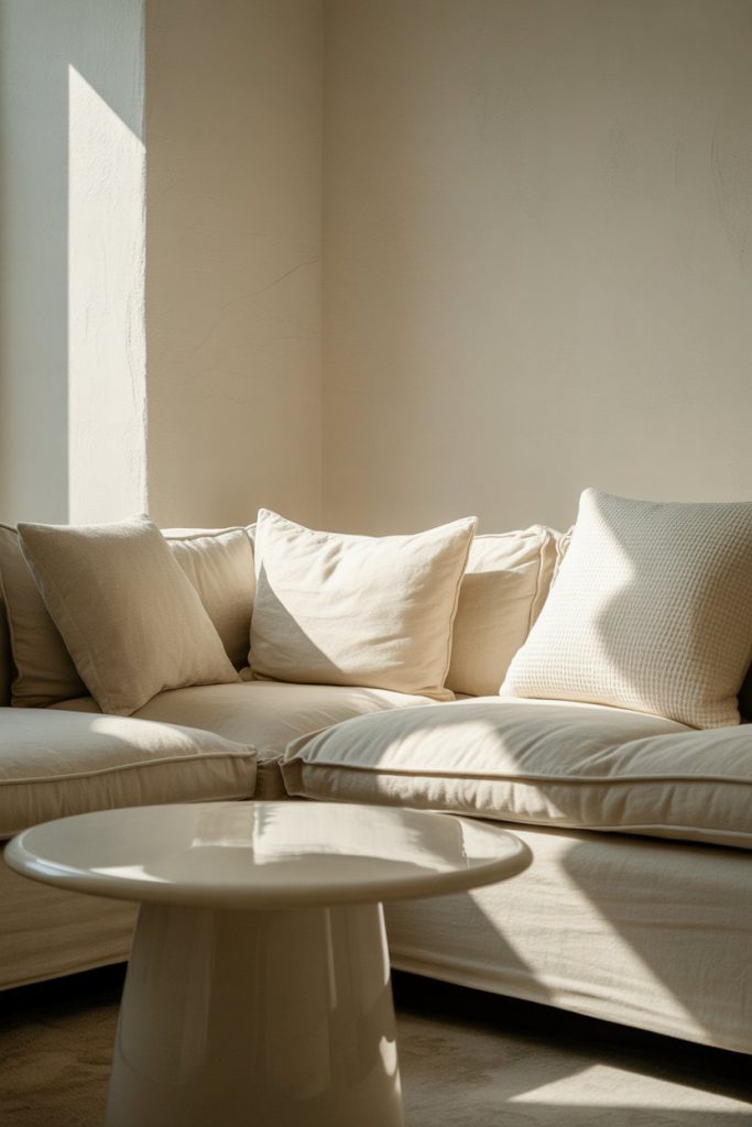 A single color family—say, shades of white, cream, and ivory—can create a sophisticated, cohesive look when you vary the textures and finishes. Matte paint, glossy ceramics, nubby linen, and smooth leather all reflect light differently, adding richness without introducing new hues. This is modern minimalist design at its most refined.