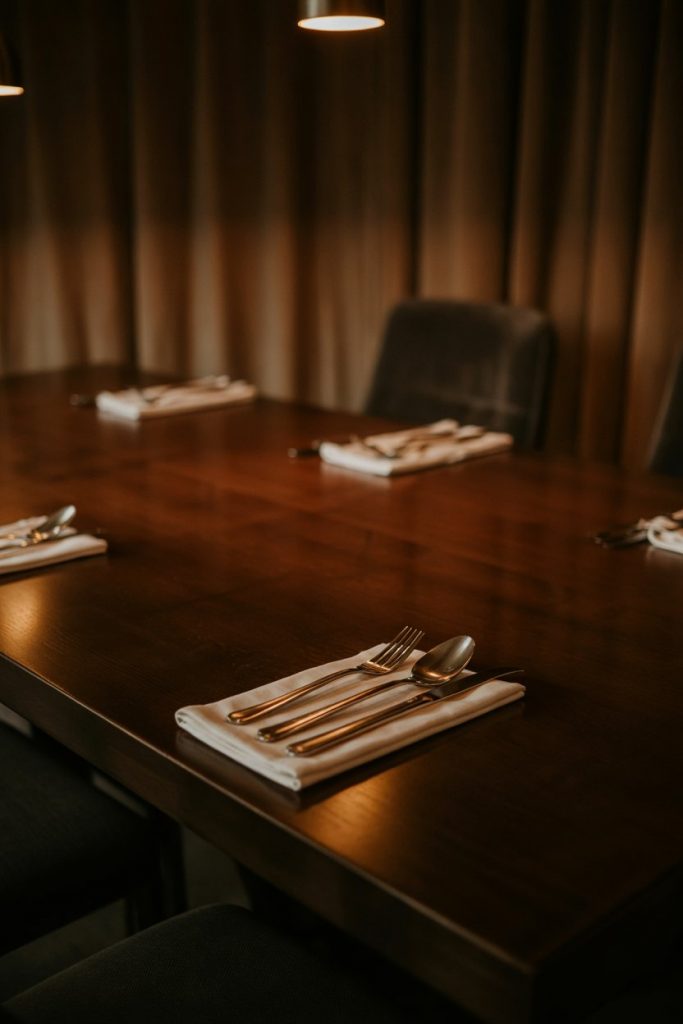 Deep, dark brown tones make a bold statement in 2026. A rectangular wooden table, paired with soft lighting and metallic cutlery, creates a cozy yet sophisticated atmosphere. It’s the perfect backdrop for dinner parties or romantic evenings—a blend of warmth and refinement that complements both classic and modern interiors.