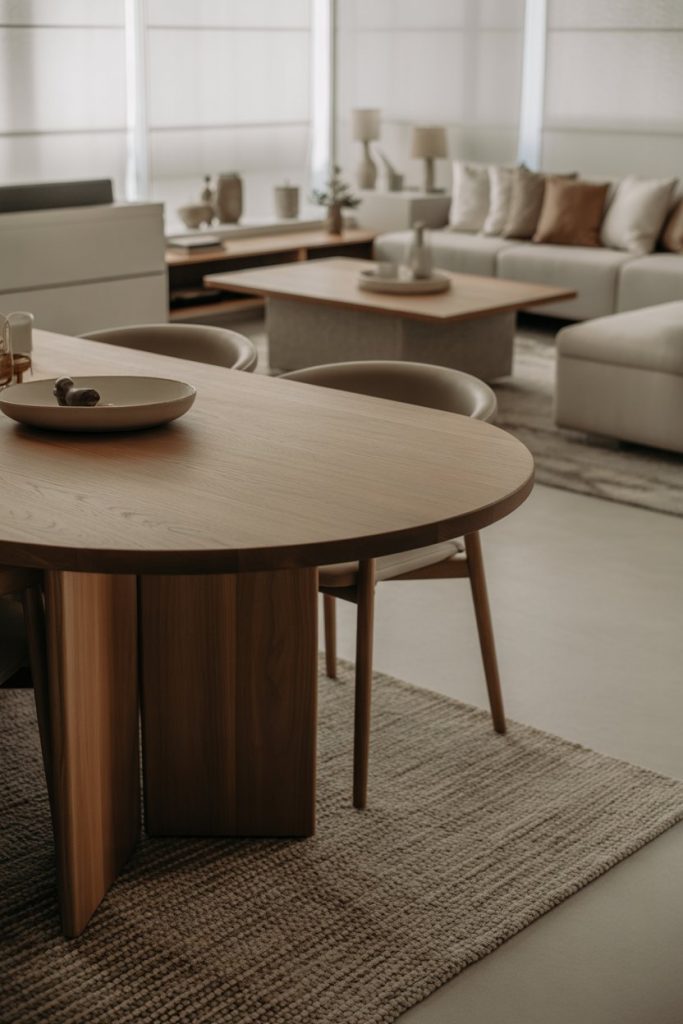 For cramped spaces, a round dining table enhances the feeling of togetherness and collaboration. 2026, designers have been working to create a perfect balance of warm and elegance through juxtaposing modern luxury wood frames and glass table tops. This shape fits perfectly in small living room or apartment dining zones, especially with a rug under to anchor the look. As stylist Emily Henderson suggests, curved furniture adds softness and flow, making it a timeless centerpiece that feels both classic and current.