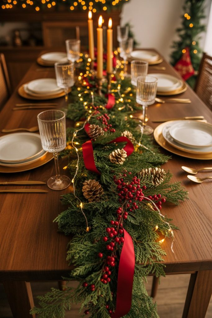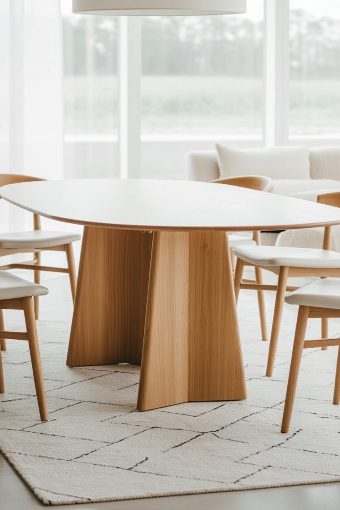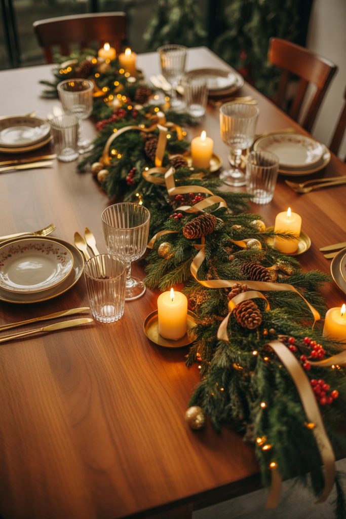 Holiday gatherings deserve their own mood. A wooden or white table decorated with natural garlands and gold accents sets a warm Christmas tone. In 2026, eco-friendly tables made of reclaimed modern luxury wood are gaining popularity. The table becomes a centerpiece for stories, laughter, and festive meals — timeless and meaningful. Add a rug under for that final layer of comfort.