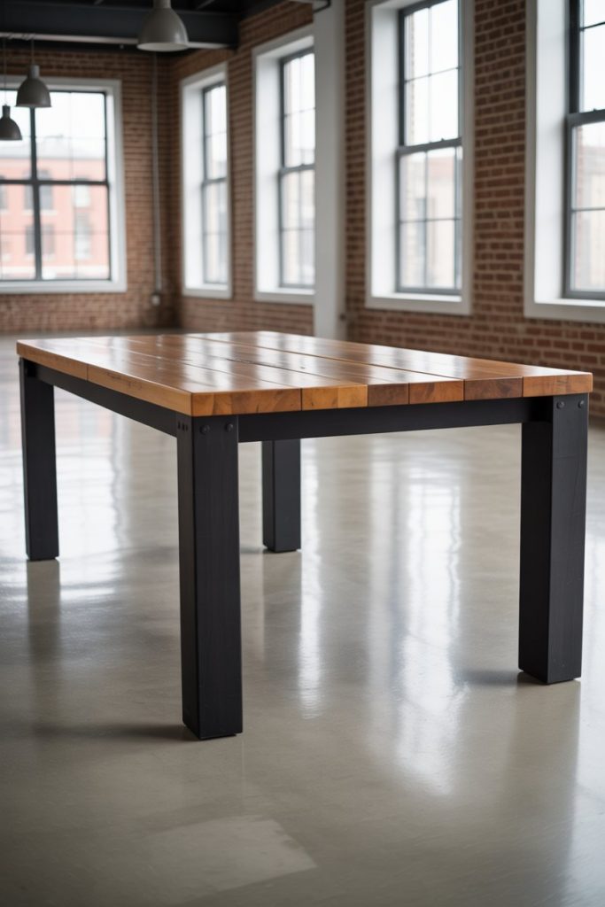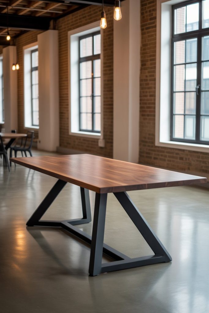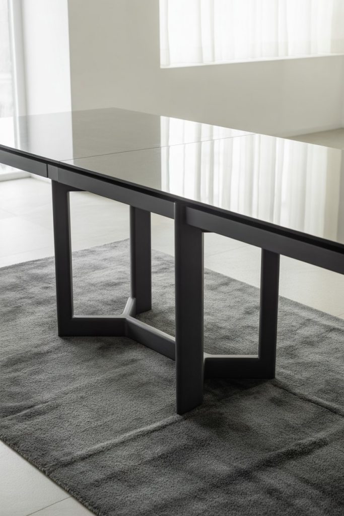 Industrial style returns with raw materials and solid structure. A table anchored to the floor by sturdy steel legs and black detailing fits loft apartments or open kitchen spaces. Combined with wooden tops and glass inserts, it merges toughness and elegance. In 2026, industrial dining celebrates authenticity and function — a favorite of urban designers.