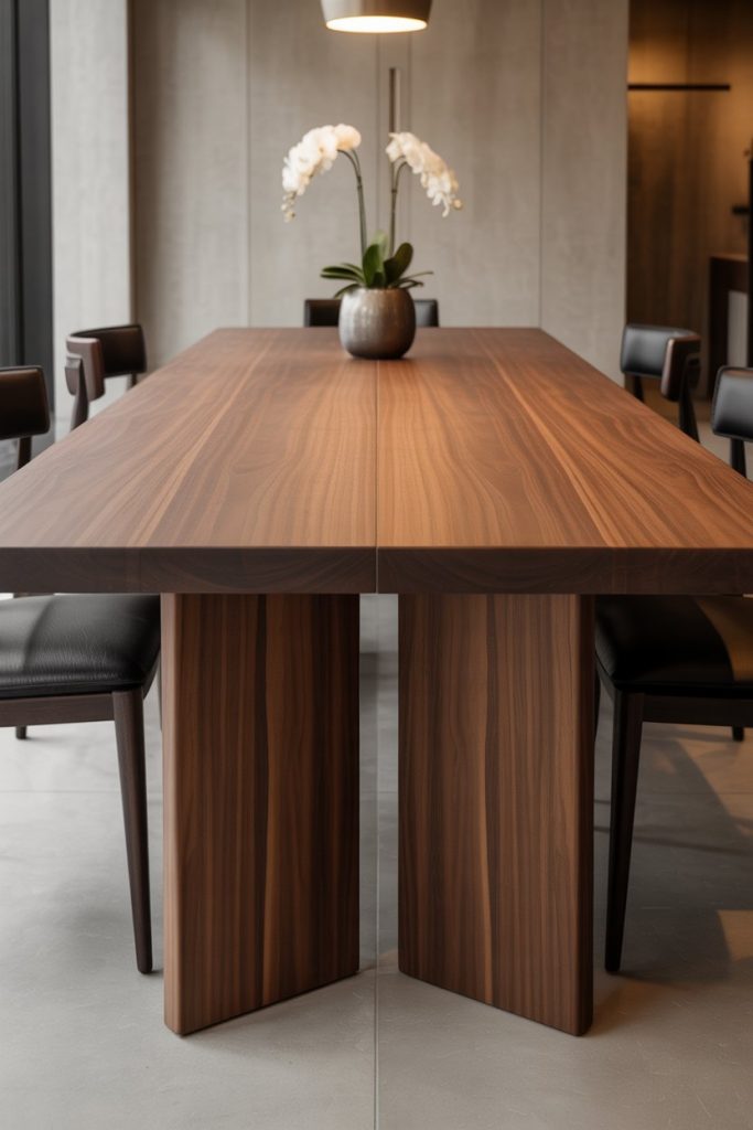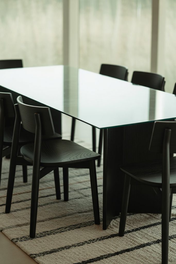 A black dining table makes a powerful statement. In 2026, matte finishes paired with glass or wooden textures define the modern minimalist look. This design works well in small spaces when balanced with light walls and a textured rug under. It’s a favorite among stylists at Elle Decor for its ability to ground a room while adding effortless sophistication.