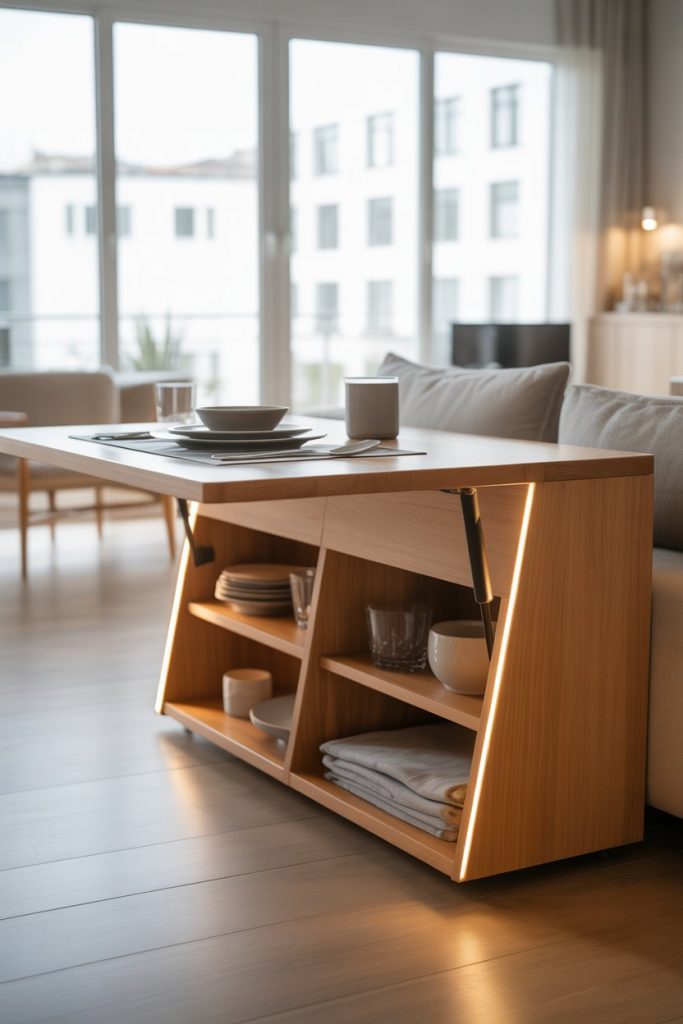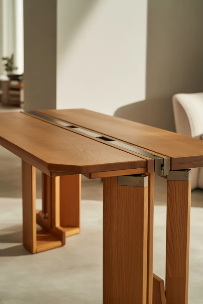In 2026, mechanisms are hidden sleeker within wooden or glass frames designed for both dining and work. When folded, it serves as a console; when opened, it easily hosts dinner for four. Many apartment owners love this space saving idea, as noted by Amber Interiors, for bringing versatility without cluttering the kitchen or living area.