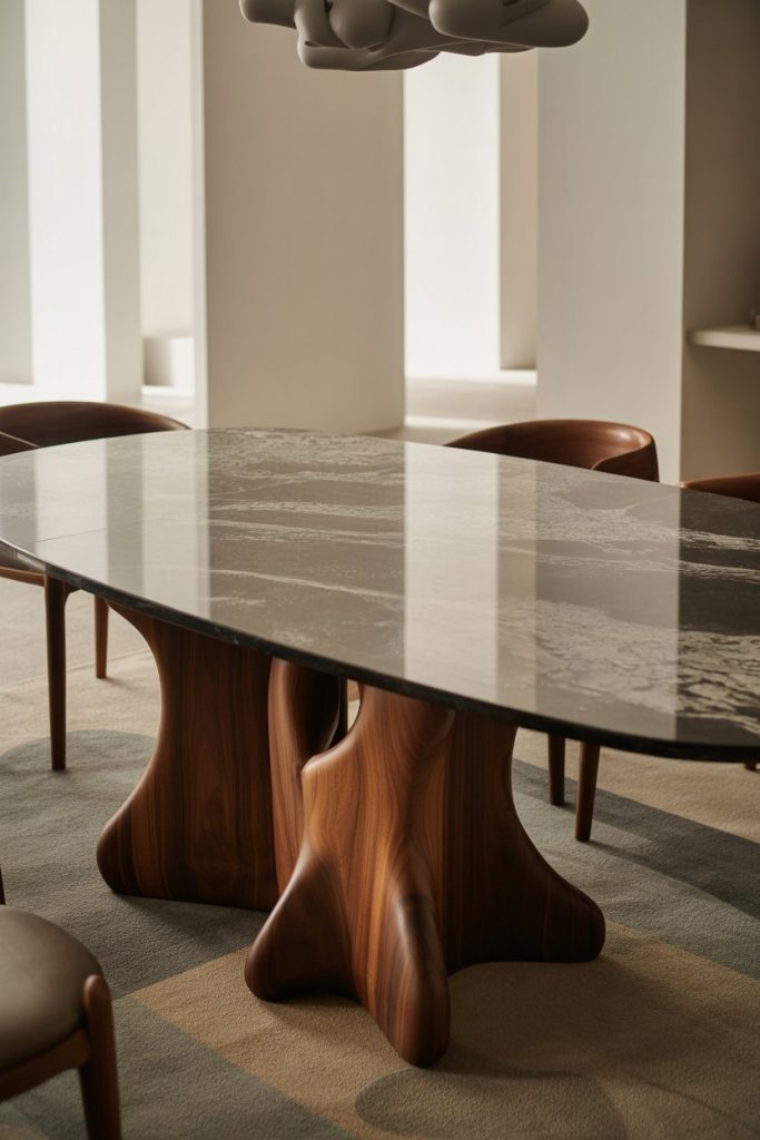 For a luxurious yet natural feel, a granite top on a modern luxury wood base creates a dramatic focal point. Designers are using thinner slabs in 2026 to make the material lighter without losing its refined edge. This style suits open kitchen layouts or small living rooms looking for a sculptural centerpiece. It’s both practical and striking, a piece that feels built to last.