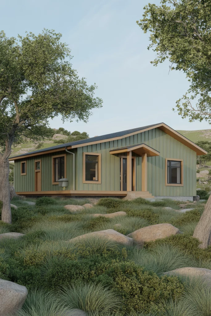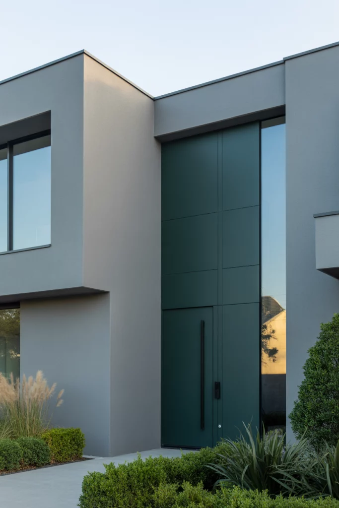 For those who prefer a modern aesthetic, gray or blue grey exteriors with a dark blue or green door create subtle drama. This contrast keeps the look sleek while showing personality. As seen in Dwell Magazine’s 2026 forecasts, such exteriors balance calm neutrality with bold individuality — perfect for contemporary suburbs or urban settings.