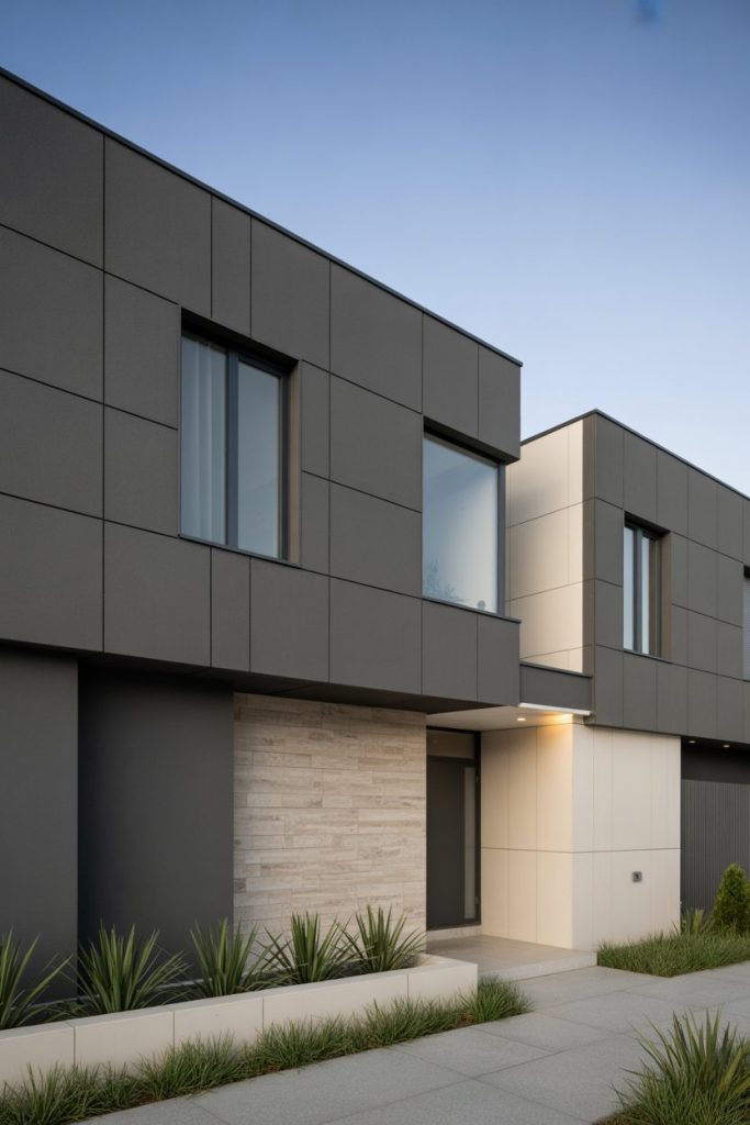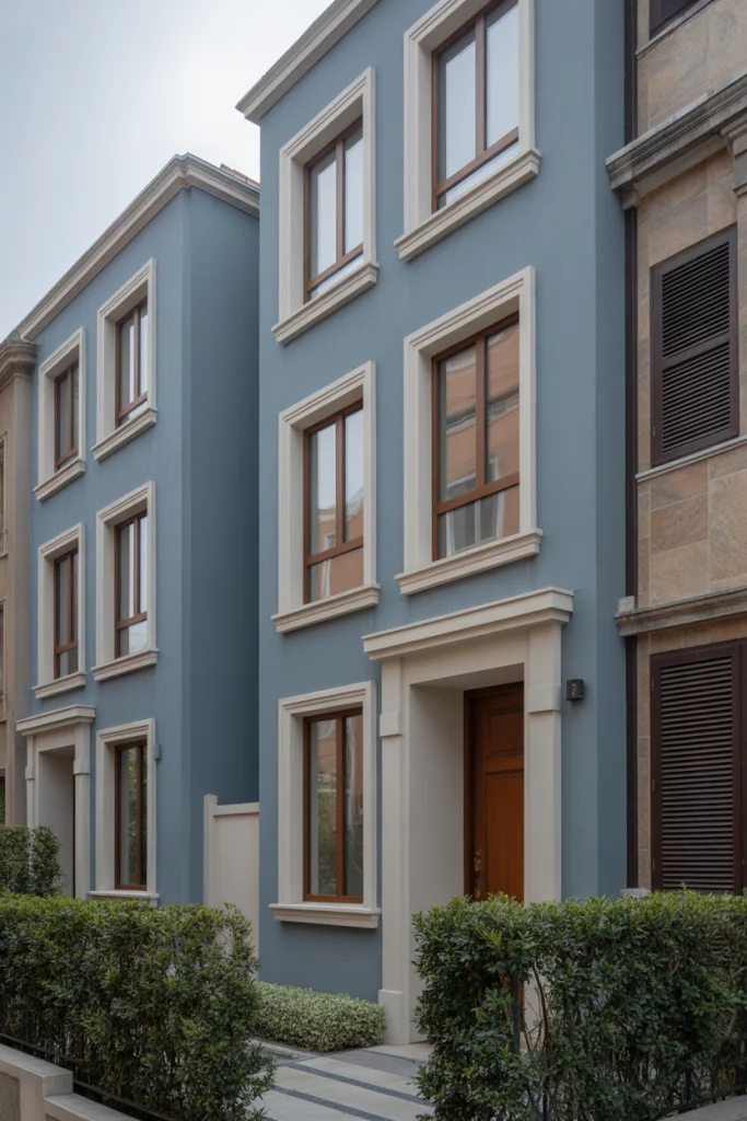 For city dwellers, blue grey exteriors deliver a cool, refined tone that stands out among concrete surroundings. Combined with dark metal or stone detailing, it evokes a stylish modern industrial mood. This is one of the defining 2026 trends in metropolitan housing, balancing serenity and sophistication.