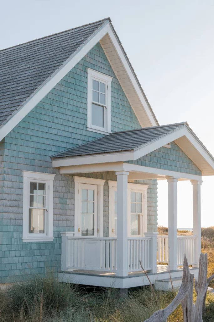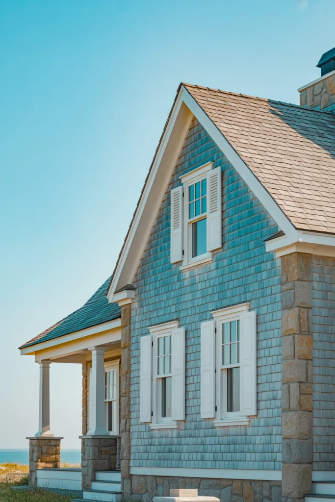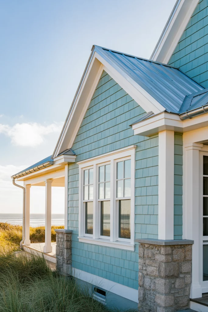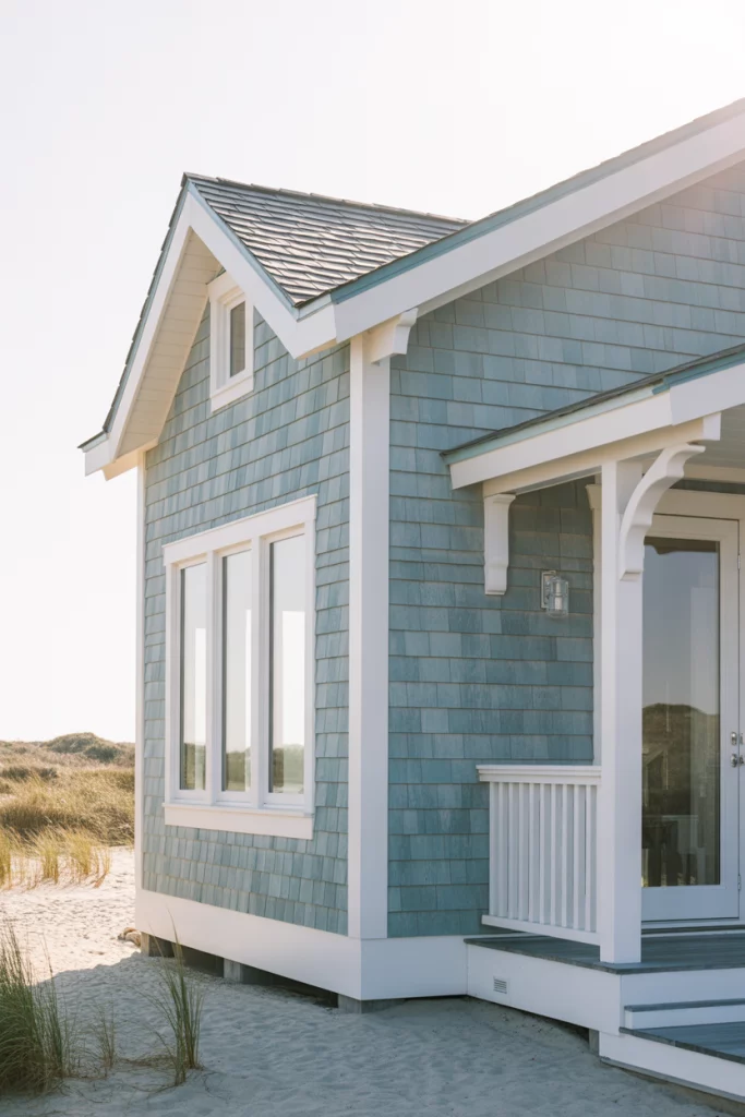 Inspired by the ocean, blue and white coastal combinations never fade out of style. In 2026, designers predict a comeback of weathered blue grey siding paired with bright white trim. The result feels fresh, clean, and relaxed — ideal for coastal cottages or suburban homes wanting a breezy vibe.
