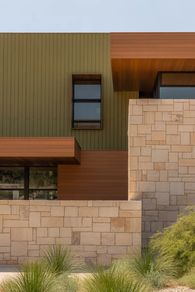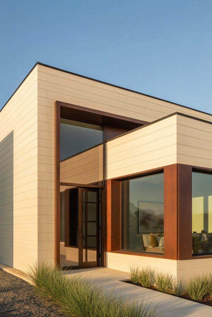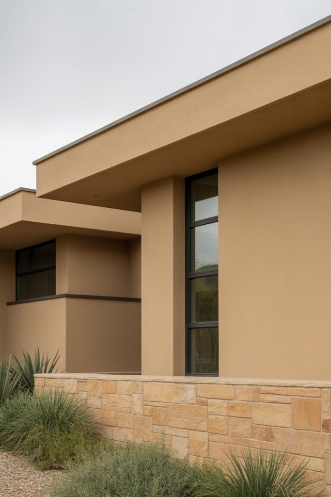 Combining beige and brown gives exteriors a warm, minimalist feel that feels both cozy and clean. A beige main body with dark brown trim creates natural harmony and works beautifully in desert or countryside settings. Many modern homes embrace this pairing for its effortless sophistication and long-lasting appeal.