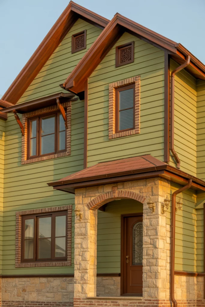 In modern ranch-style homes, olive green paired with beige trim creates understated beauty. It connects the house with its landscape and introduces warmth without excess color. Designers note that these hues photograph beautifully in sunlight, adding curb appeal that feels effortless yet elevated.