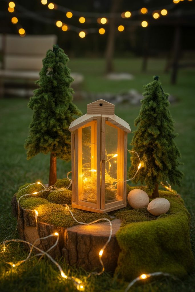 Repurposing a lantern into a tiny enchanted forest is a favorite homemade project for people who love warm, cozy décor. Filling it with moss, LED lights, and miniature trees creates a glowing world perfect for shelves or evening patios. This idea works beautifully for both indoor and outdoor settings, giving a soft, magical ambiance that feels peaceful and nostalgic.