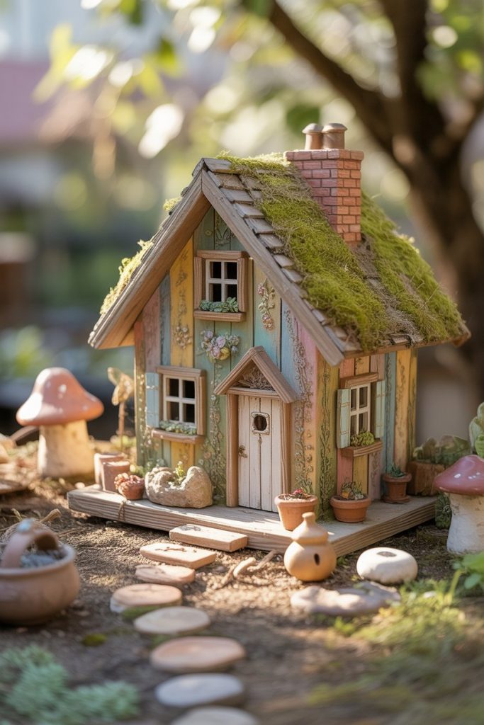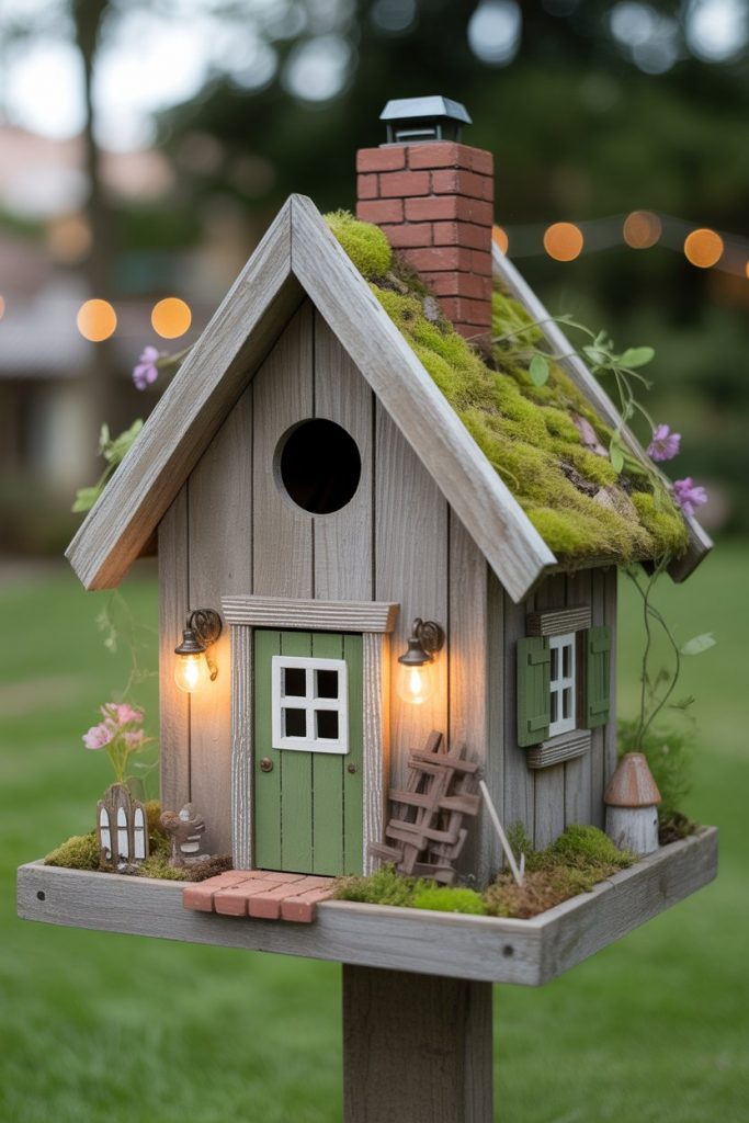 Transforming a birdhouse into a fairy cottage is an easy and charming idea for rustic-style decorators. With a bit of paint, moss, and miniature décor, an ordinary birdhouse becomes a magical home that fits in any backyard or porch. Many DIY creators use this method to personalize old garden structures while adding playful fantasy elements.
