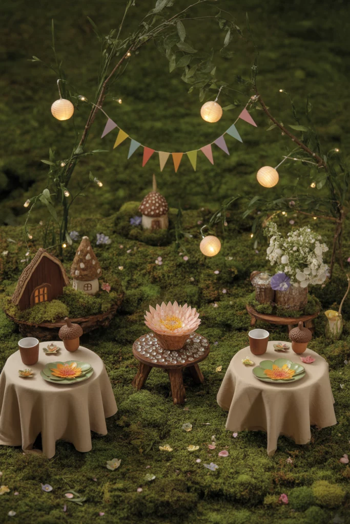 A fairy garden designed for a party adds a fun decorative touch to celebrations. Using bright moss, tiny banners, and playful miniature tables creates a scene that guests love to explore. This style works for birthdays, showers, or outdoor gatherings and can be customized with seasonal colors to match any event theme.