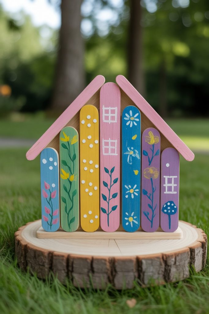 Crafting tiny cottages from popsicle stick pieces is a creative DIY project families enjoy. Kids love painting roofs and adding details, and adults appreciate the personal charm these homemade structures bring to fairy gardens. These houses fit well in pots, trays, or large outdoor areas, making them a flexible and budget-friendly option.