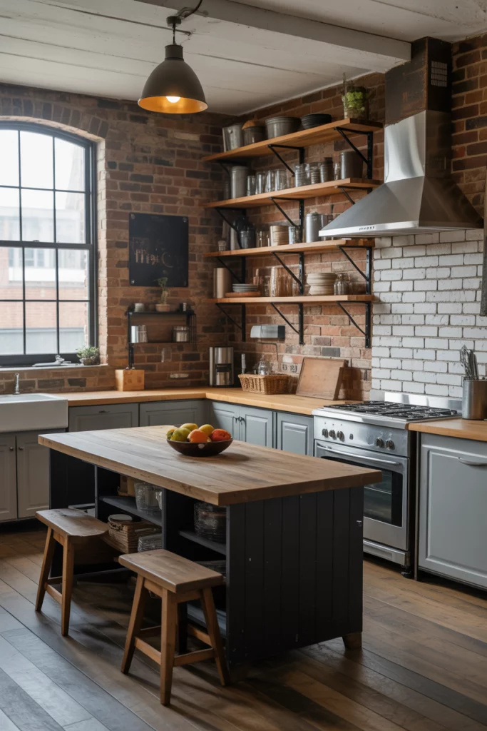 No longer just an island for food preparation — this is really a new gathering spot. Tables big enough for storage and seating with butcher block tops make a kitchen the social hub of any home. A modern rustic idea that is equally functional and familial.