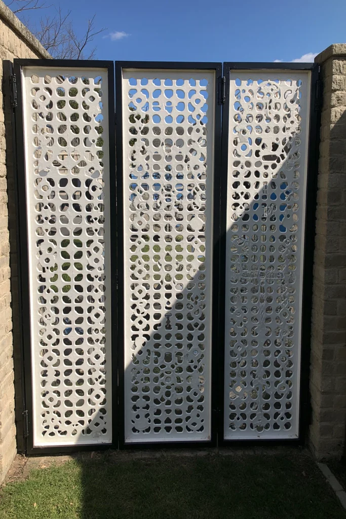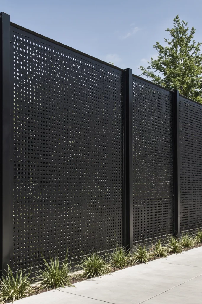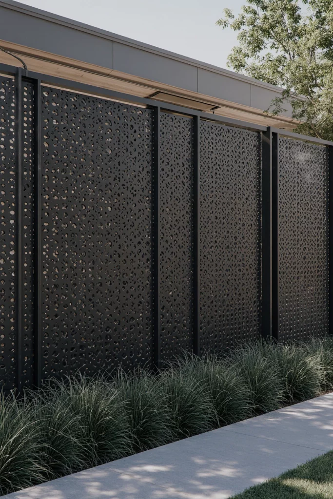Laser-cut metal panels offer a bold decorative element for homeowners wanting privacy plus personality. Botanical, geometric, or abstract cutouts create shadows and dimension while keeping durability high. Many modern yards use these screens as focal points, replacing traditional solid walls with something expressive.