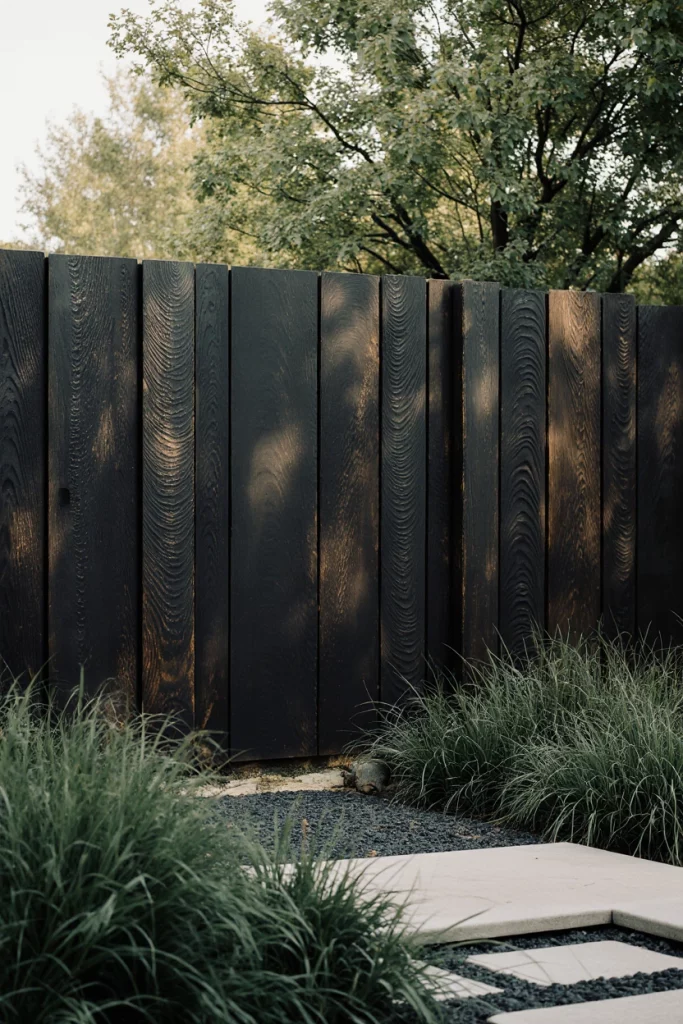 The traditional Japanese technique of charring wood creates dramatic, textured panels that resist insects and aging. Homeowners who love bold, moody exteriors appreciate this option for its character and longevity. Landscape designers often recommend it next to stone gardens or minimalist plant beds.