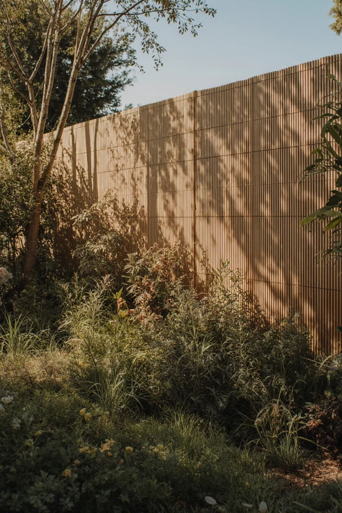 Tall privacy panels made from engineered wood or composite materials offer long-lasting protection for backyards and patios. These panels mimic natural grain while resisting weather, making them popular for families wanting minimal upkeep. Their clean vertical layout also suits modern design, especially in tight urban lots.