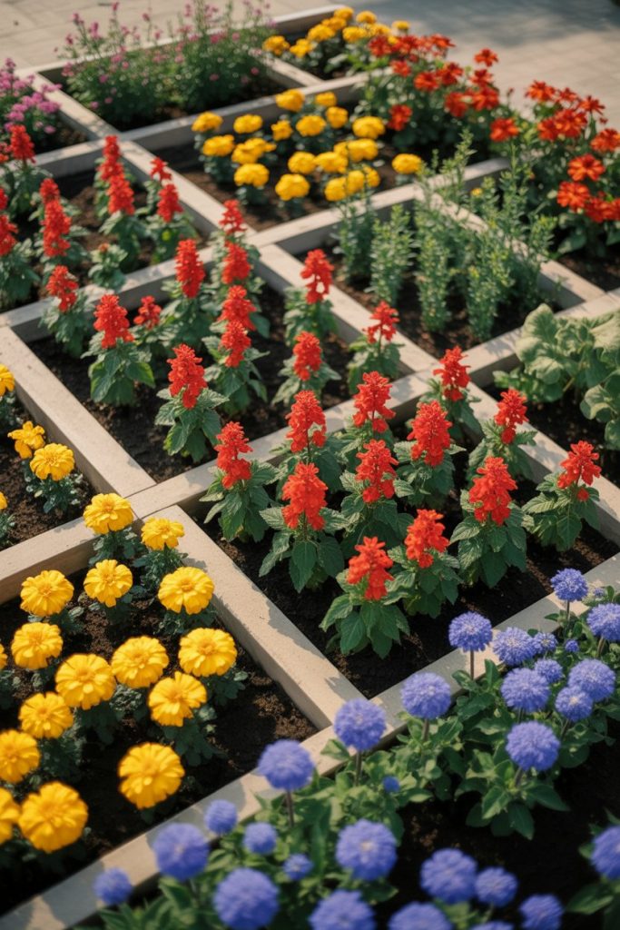 For families with Minecraft-obsessed kids, designing a flower bed in a blocky, pixelated style is a fun way to merge gaming with gardening. Use plants in distinct color blocks—red salvia, yellow marigolds, blue ageratum—to create simple patterns or even recognizable game icons. This design idea is surprisingly popular in suburban neighborhoods where parents are looking for projects that get kids excited about outdoor time. The grid layout also makes planning and planting easier for beginners. ![]()